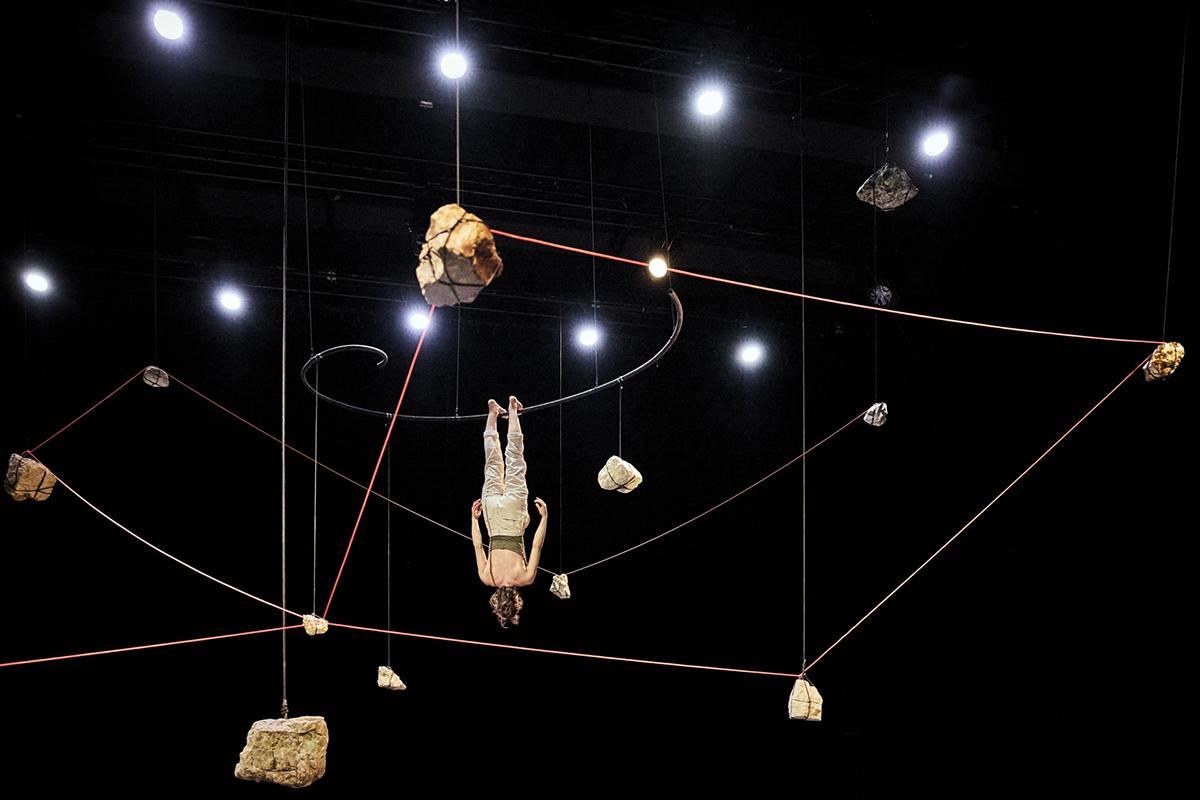 Des pierres. Roches, cristaux, aérolithes. Avec leurs gueules cassées, leurs fronts bosselés, elles portent le poids des âges. Témoins silencieux, elles vacillent aujourd’hui, fragiles, au bord de l’effondrement. Le collectif Maison Courbe leur tend l’oreille, inspiré par La Chute du Ciel du chaman yanomami Davi Kopenawa : pour les Yanomami, les minéraux – or, cuivre, pétrole – soutiennent le ciel. Les arracher, c’est le faire tomber. Sur le plateau, entre arts visuels, cirque aérien et musique, une constellation minérale suspendue devient terrain de jeu et de réflexion. Cristaux comestibles, pierres percussives, feuilles d’or : tout invite au geste, au son, au soin. Dans cette chorégraphie sensible, un dialogue se crée, poétique et politique, pour réapprendre à habiter le monde. Résister, durer, tomber, consteller… Que peuvent encore nous enseigner les pierres, si nous choisissons de les écouter ?