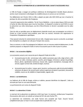 - l'acceptation du règlement d'attribution de la subvention.
